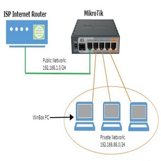 روتر میکروتیک را به کامپیوتر و شبکه خود متصل کنید.