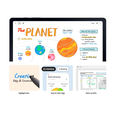 تبلت مدل GALAXY TAB S6 از محصولات جدید سامسونگ است که با صفحهنمایش 10.4اینچی طراحی و تولید شده است. بدنهی تمام آلومبنیومی این تبلت 5.7 میلیمتر ضخامت دارد و از کیفیت ساخت و استحکام خوبی برخوردار است. تراشه Exynos 9611 این تبلت، دارای پردازندهی 8هستهای Cortex-A73 با پردازشگر گرافیکی Mali-G72 MP3 است. رم4 گیگابایتی و حافظهی 64 گیگابایتی هم از دیگر مشخصات فنی این محصول است. یک باتری لیتیوم-پلیمر 7040 میلیآمپری هم وظیفهی توانرسانی به این قطعات سختافزاری و صفحهنمایش را به عهده دارد. درمجموع قطعات سختافزاری این مدل طوری انتخاب شدهاند که هم توان کاری خوبی داشته باشند و هم باعث افزایش بیشازحد قیمت نهایی کالا نشوند. این تبلت قابلیت اتصال سیمکارت دارد و شبکههای ارتباطی 2G ،3G و 4G را پشتیبانی میکند و میتوانید در تمامی شرایط با GALAXY TAB S6 lite آنلاین باشید. دوربین پشتی یا همان دوربین اصلی این تبلت از رزولوشن 8 مگاپیکسل برخورداراست و دوربین جلو یا همان سلفی هم کیفیت 5 مگاپیکسلی دارد. درمجموع میتوان GALAXY TAB S6 lite را یک محصول خوشساخت و یک همراه همیشگی برای انجام انواع امور روزمره در یک صفحهنمایش نسبتا بزرگ دانست.